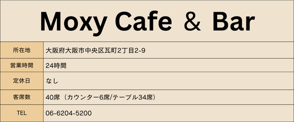 5つ目は大阪市中央区の本町エリアにある「Moxy (モクシー カフェ&バー )」です!