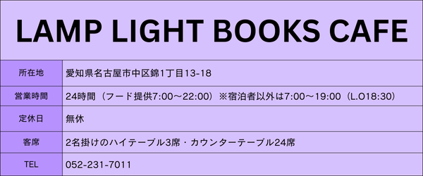 (出典:LAMP LIGHT BOOKS CAFE https://www.lamplightbookshotel.com/nagoya/cafe/