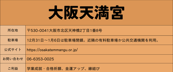 その他にも、大阪天満宮やその周辺にはパワースポットが多くあるので、公式サイトからチェックしてみてください。