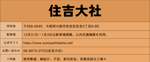 その他にも、住吉大社にはパワースポットが多くあるので、公式サイトからチェックしてみてください。