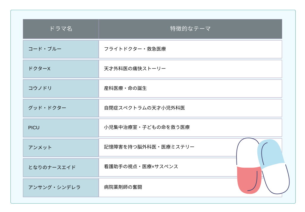✅これまで医療ドラマであまり描かれなかった病院薬剤師という職業を知ることができる。