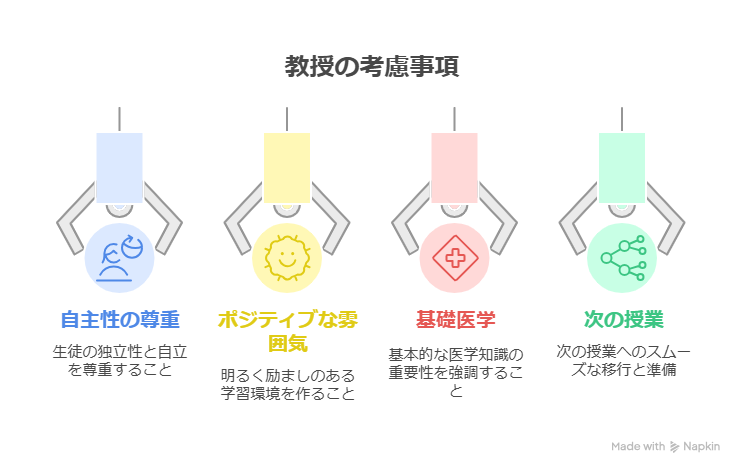 実際の臨床現場での経験やエピソードを授業に取り入れることで、知識を実生活や将来の仕事に結びつけやすくしています。