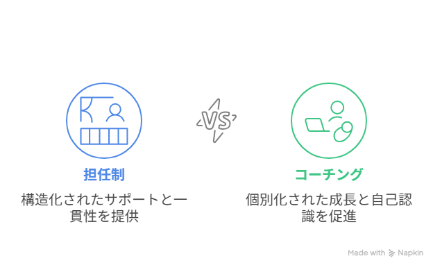 ですがその代わりに、生徒とのコミュニケーションを通じてコーチング的な視点を取り入れた指導が行われています。