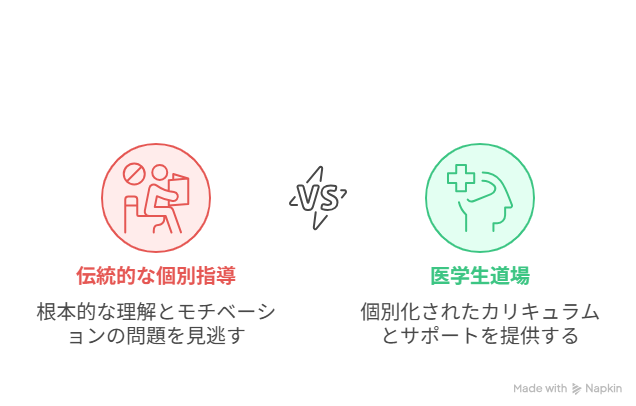 今回は、医学部専門の個別指導塾「医学生道場」の授業の特色を、他の「医学部個別指導コーチング」塾と比較しながら、わかりやすくお伝えします。