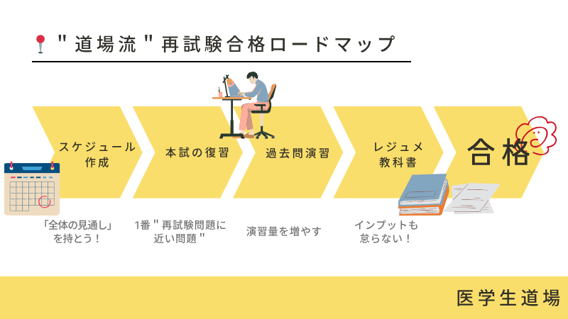 ここからは、医学生道場流の再試験合格ロードマップをお伝えしていきます!