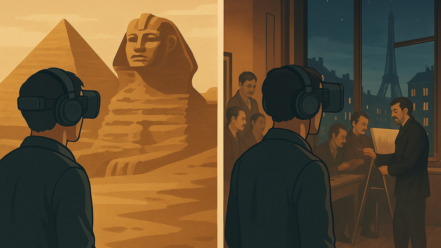 視界は360°、4500年前のエジプトや150年前のパリに!この状態では、試験のことやレポートの締め切りを考える物理的な隙間がありません。日常から完全に隔離された空間に身を置くことで、脳は強制的にスイッチオフされ、これ以上ないほどの深いリフレッシュ効果を得られるのです🤗