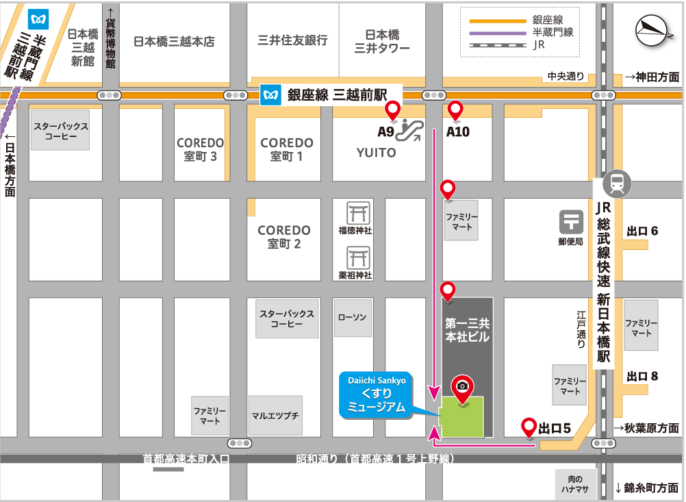 アクセス: 東京メトロ銀座線・半蔵門線「三越前」駅(A10出口)徒歩1分 JR総武線快速「新日本橋」駅 徒歩5分