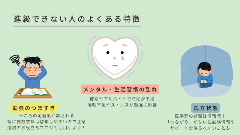 上記のような事情から、医学生道場には進級に関するお悩みを寄せられることが多いのです!