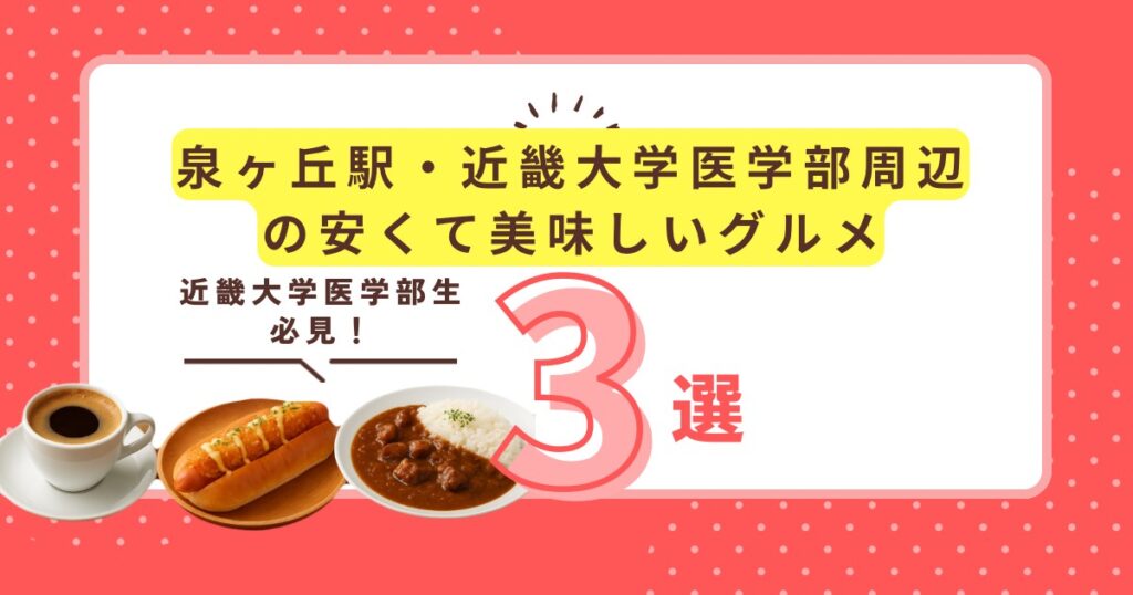特に近畿大学医学部の学生にとっては、どのお店も「安くて美味しい」という強い味方。授業や実習で忙しい日々の中、気軽に立ち寄れるお店としてぜひ参考にしてみてください。きっと、自分だけのお気に入りの一軒が見つかるはずです。