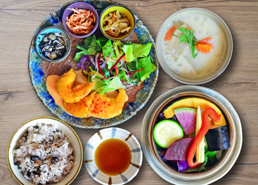 名前の通り、蒸し野菜をたっぷり使った体にうれしいごはんが楽しめるお店。