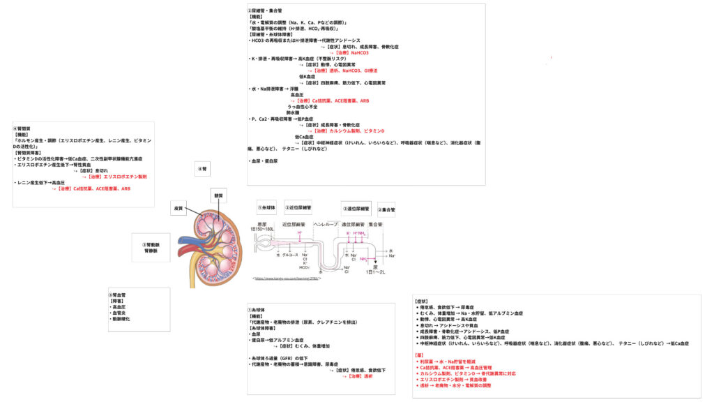 実習中に「この患者さんの高カリウム血症はなぜ起きているのか?」と考えるとき、学習マップが頭にあるとスムーズに説明できます。