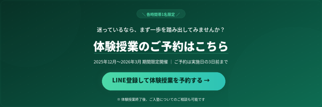 2025年12月〜2026年3月の期間限定開催です。この機会を逃さず、ぜひ一度、橋本将吉先生の体験授業を受けてみてください。「受けてよかった」と思える時間になることをお約束します。