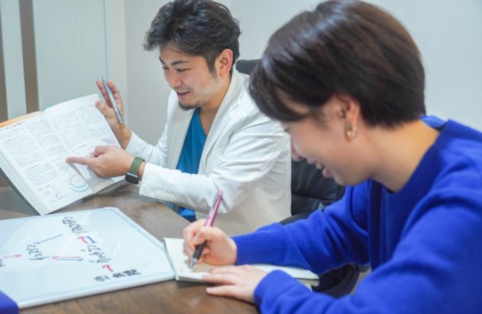 最大の強みは、分野ごとに医師講師が授業を担当すること。例えば解剖学は整形外科医、内科学は内科医といった感じで範囲に合わせてローテーションしていきます。その分野を得意としている講師が個別で指導するので、質の高い授業を受けることが可能です。