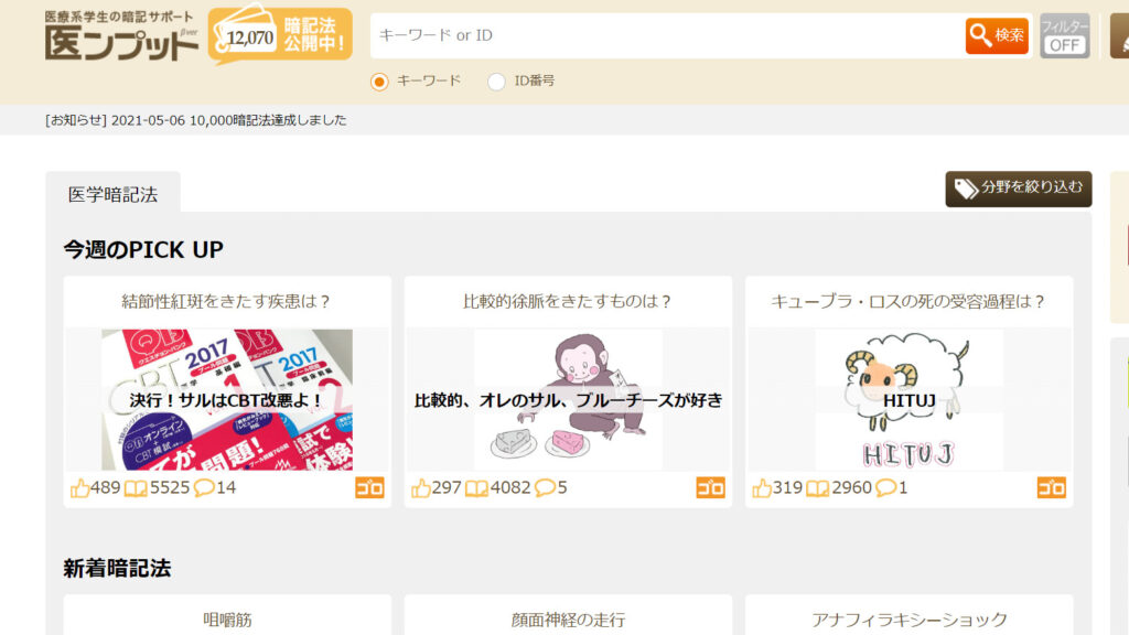 こちらも先程紹介したMEDMNEMOと同じく、語呂合わせを数多く紹介しているサイトです。