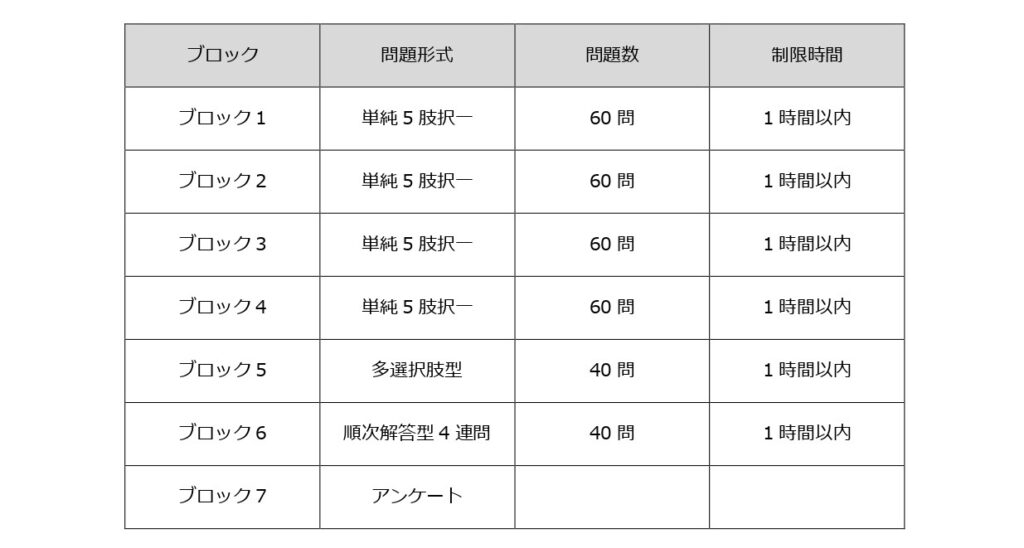 それでは、CBTの出題範囲・出題形式について詳しくみていきます。