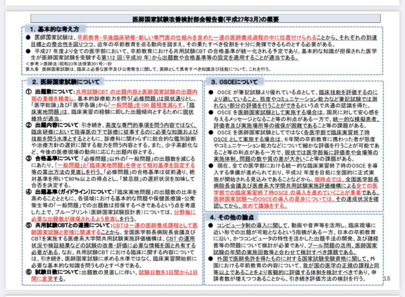 医師国家試験の質的向上を狙った制度改定は今後加速すると考えられます。