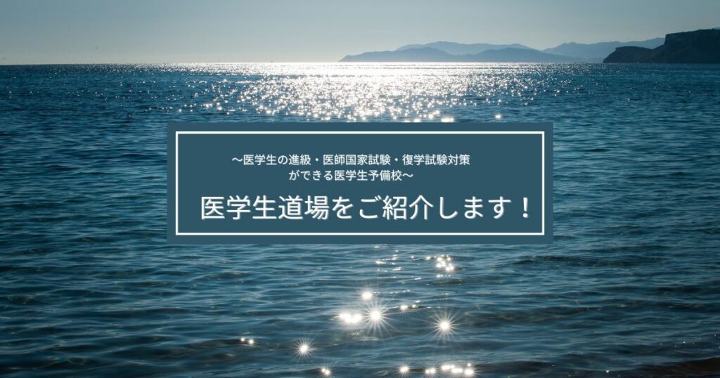 医学生道場は、定期試験やCBT・OSCE、医師国家試験や復学試験等医学生を悩ませる多くの試験の対策に特化した医学生予備校であり、日本で唯一の現役の臨床医・研究医による「個別指導コーチング」を提供しています!