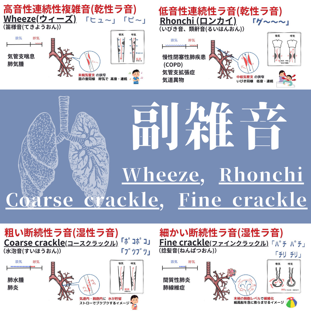 【副雑音】今さら聞けない!呼吸音・副雑音の種類とは?副雑音の種類を完全解説!【医学生道場】