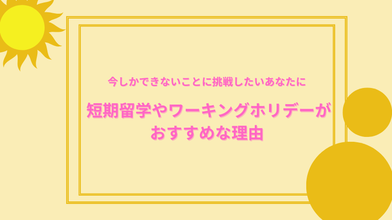 今しかできないことに挑戦したいあなたに!短期留学やワーキングホリデーがおすすめな理由をご紹介します。